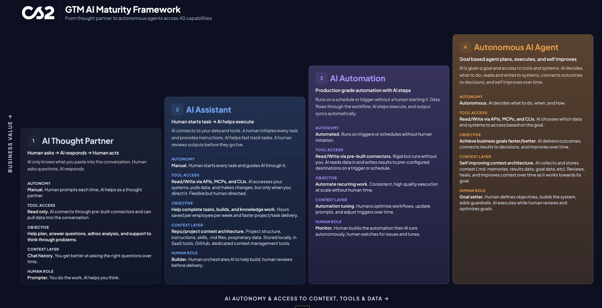 This is why we keep on iterating on our maturity framework and how each GTM capability can move from L1 to 3/4. It helps demystify what each level means and gives us a roadmap to get unstuck from L1/2.